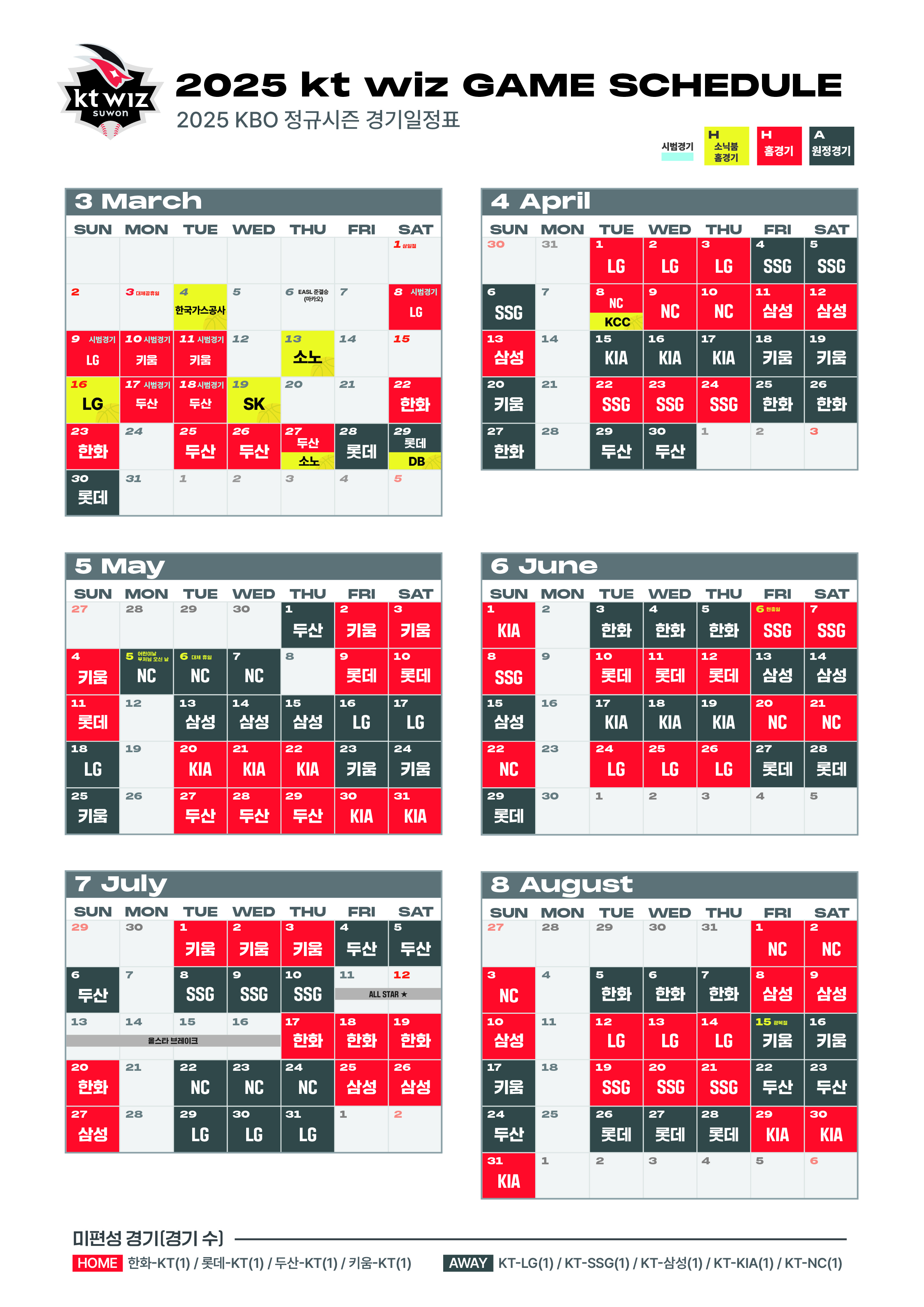 2025년 kt wiz 게임스케쥴